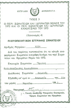 Τον Δεκέμβριο του 2001 το Διοικητικό Συμβούλιο που αποτελείτο από τους κ.κ. Κώστα Κάσινο (Πρόεδρο) Κυριάκο Ζήσιμο (Αντιπρόεδρο) Ιωάννα Σπυρίδη (Γενικό Γραμματέα) Αντρέα Χρίστου (Ταμία) Μαρί Μισιρλή, Μίκη Παλμυρη, Σταύρο Ιωαννίδη, και Χρίστο Στέκα (Συμβούλους) έκρινε αναγκαίο και προς το συμφέρον του Ομίλου, την διαφοροποίηση του Καταστατικού. Η πράξη αυτή για αναβάθμιση και εκμοντερνοποίηση των προνοιών του καταστατικού έγινε με την βοήθεια του μέλους του Ομίλου Κου. Γιώργου Μισιρλή. Κατά γενική ομολογία οι αλλαγές αυτές έφεραν τήν γενικήν ικανοποίηση των μελών του Ομίλου και ακολούθως το Διοικητικο Συμβούλιο προχώρησε και καταχώρησε το νέο καταστατικό στο Μητρώο Σωματίων του Υπουργίου Εσσωτερικών.