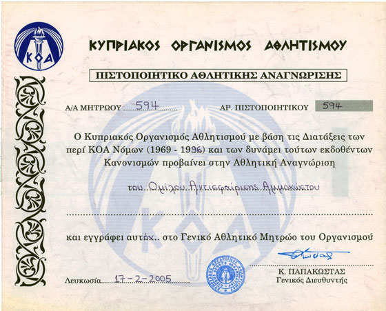Το Ιούνιο του 2006 αναδείχτηκε για 6η φορά και 4η συνεχόμενη χρονιά Πρωταθλητής στο Παγκύπριο Διασωματειακό Πρωτάθλημα.